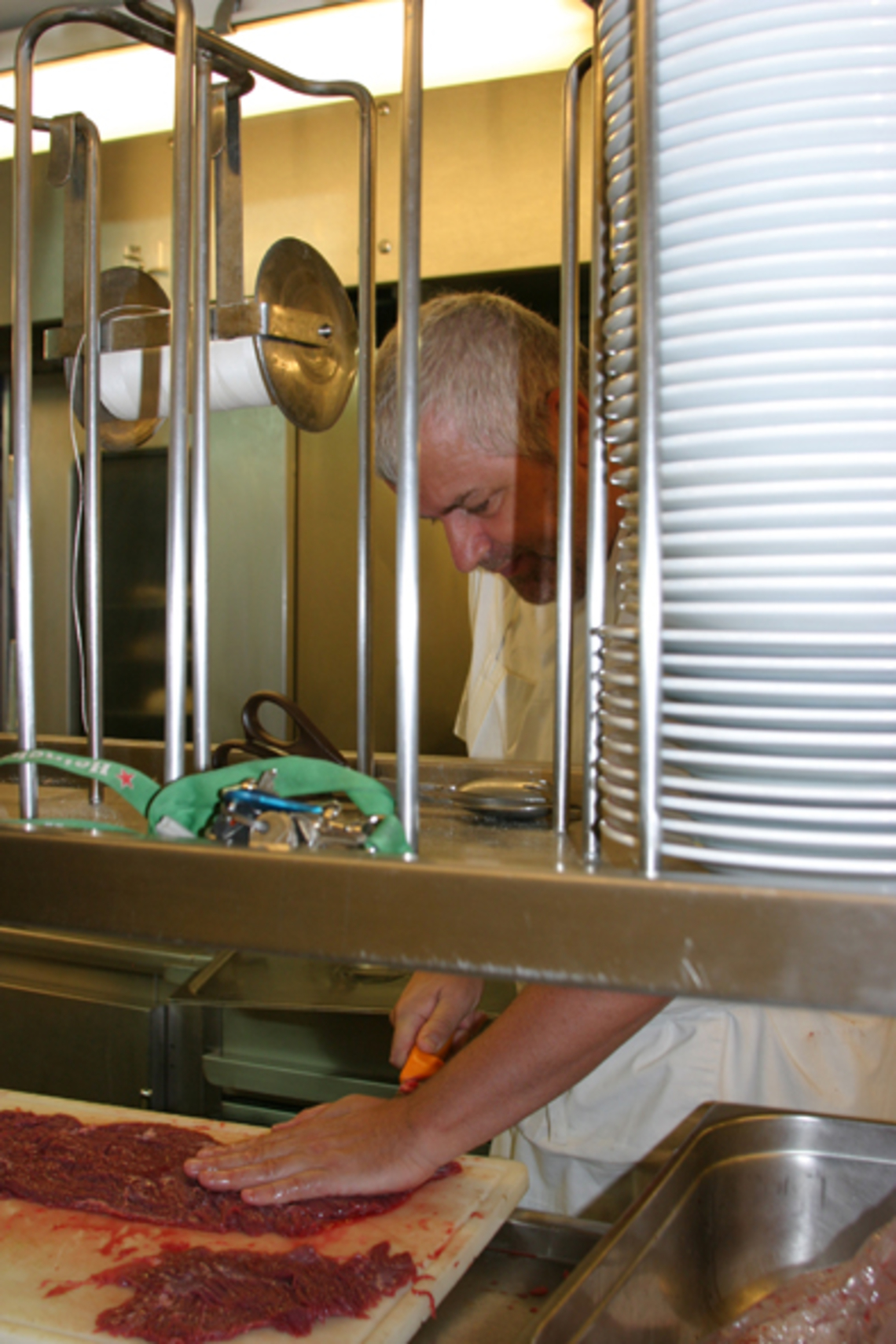 Philippe, dit Momo, est le 1er maître d’hôtel. Il est le chef des garçons et assure le service en salle. Il est aidé de Didier pour le service des repas aux tables, comme au restaurant ! Emmanuel, Hubert et Denis sont les garçons. Ils s’occupent des petits déjeuners, de la mise en place de la cafétéria, de l’entretien et de la plonge. (de gauche à droite sur la photo : Emmanuel, Didier, Philippe, Hubert et Denis) |