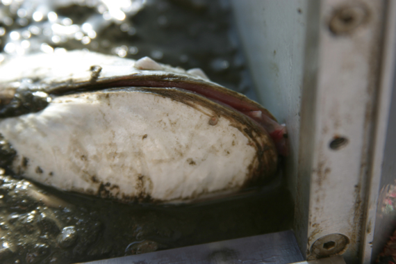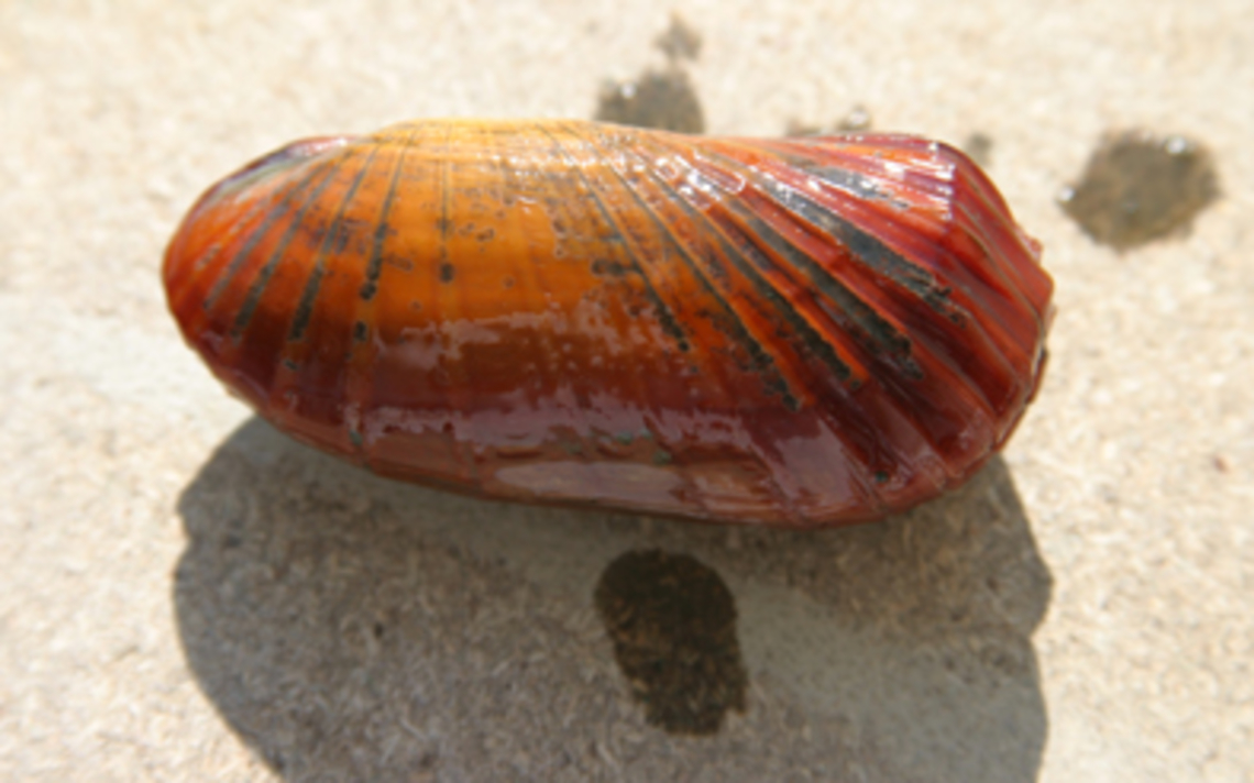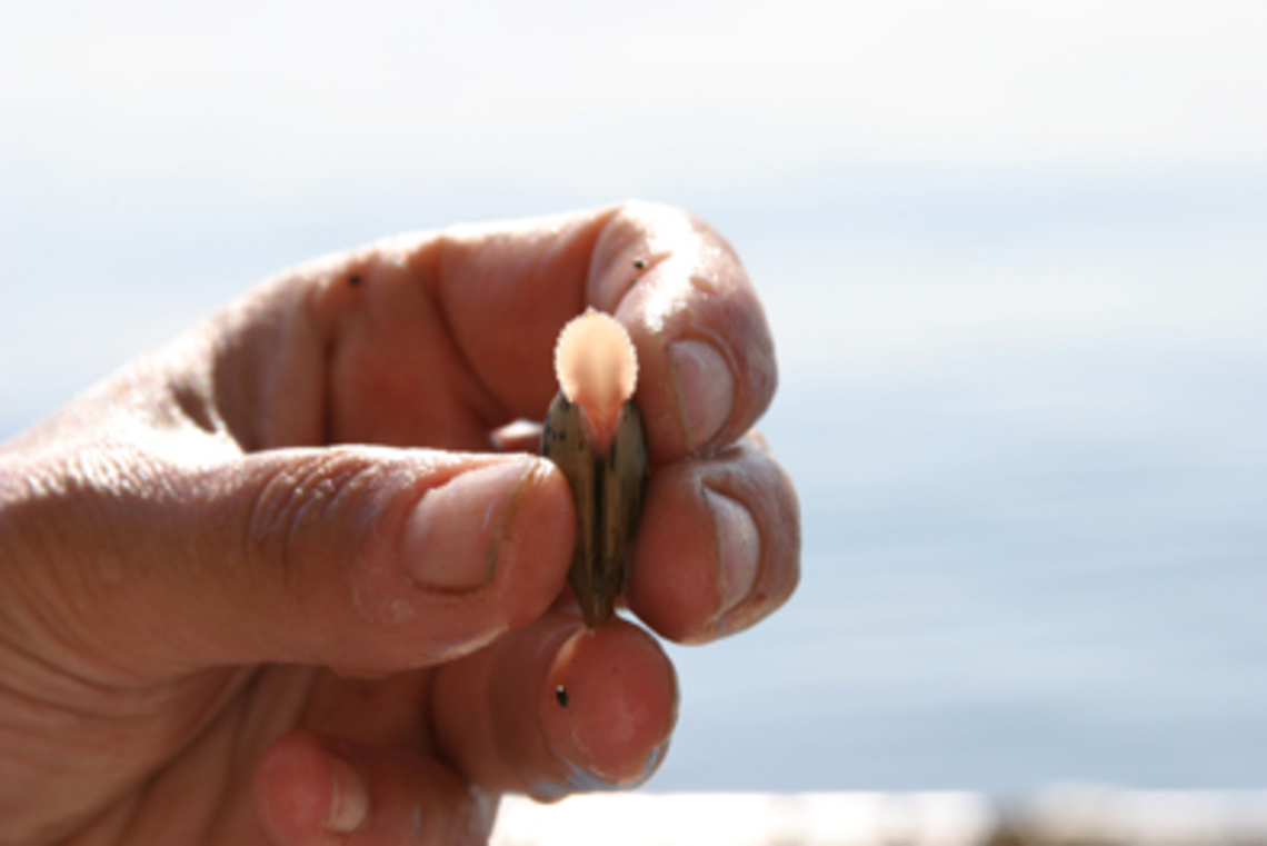 Un bivalve Acharax vivant retrouvé dans le carottier lame. |
