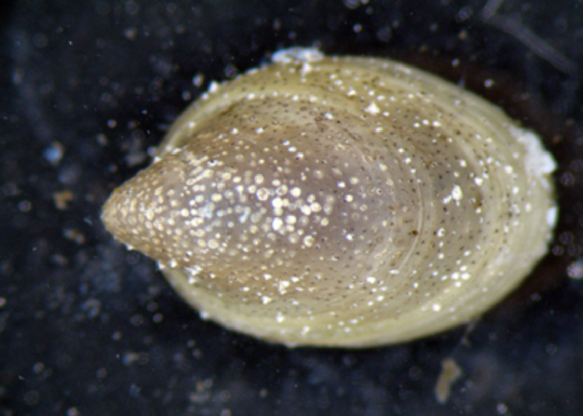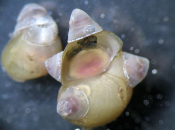 Légende : gastéropodes colonisé par de petites patelles.