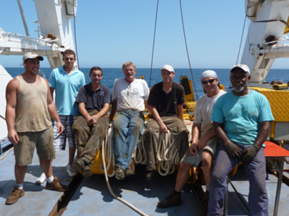 Une partie de l’équipe du pont avec de gauche à droite Alban, Jean-Baptiste, Fabrice, Jean-Paul, Tony, Olivier et le chef, Bérard. |