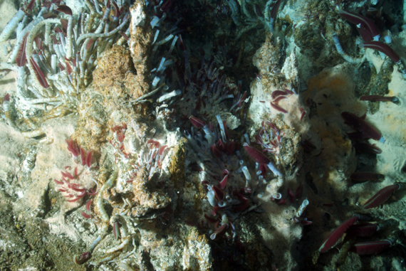 Leyenda : Paroi couverte de vers polychètes de l’espèce Riftia pachyptila.