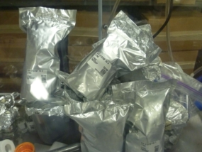 La dernière carotte du site SPG12 est annoncée. Les équipes travaillent dur pour terminer l’échantillonnage de ce dernier site. SPG12 est le site de référence car situé en dehors du Gyre pacifique sud. Par malchance, la houle intense et les vents violents de ces derniers jours ont finalement eu raison du câble de carottier. Celui-ci a cédé sous les forces de tension, et a été sectionné en deux. Les équipes techniques se sont efforcées de récupérer le câble et le carottier en fond de puits afin de réparer l’avarie. Chose pas facile à réaliser sous 5000 m de fond. Apres 14 heures d’acharnement, le câble est enfin remonté avec tout l’équipement associé. Les opérations peuvent reprendre avec de petits changements de programme. Un seul trou sera partagé pour les géochimistes et les microbiologistes car nous devons reprendre rapidement notre route après ce site. Au total, 130 m de sédiment, soit 14 carottes de 9 mètres environ, ont été traitées. La toute dernière carotte est sur le pont. Ensuite, pour certains échantillons, l’utilisation de la chambre anaérobie et de sacs scellés en aluminium remplis de gaz inerte (azote) s’avère nécessaire pour maintenir une atmosphère anaérobie, c’est-à-dire sans oxygène.