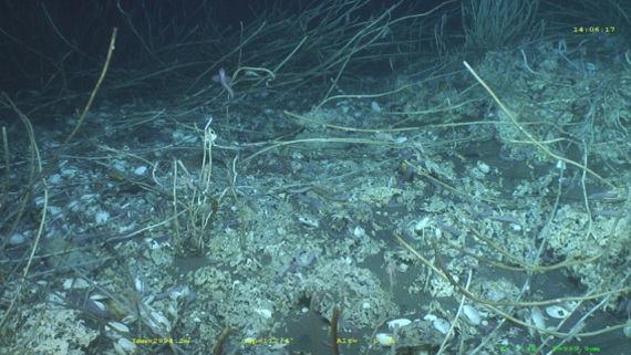La plongée a permis une courte exploration de ce nouveau site. De grands champs de siboglinidés, des cimetières de coquilles de vésicomyidés et de vastes assemblages de modioles ont été observés. Un rideau de bulles, associé à un mont carbonaté, a même été mis en évidence à l’endroit où le panache avait été détecté.