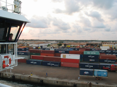 Les containers remplis de matériel se font attendre. Annoncés pour 8 h du matin, ils ne sont finalement arrivés que vers 15 h. Les scientifiques en ont profité pour effectuer les courses de dernière minute en ville, sous un soleil de plomb. Puis, branle-bas de combat pour vider les trois containers et tout ranger dans les différents laboratoires du navire. Tout doit être fin prêt et sécurisé pour l’appareillage, prévu à 18h demain.